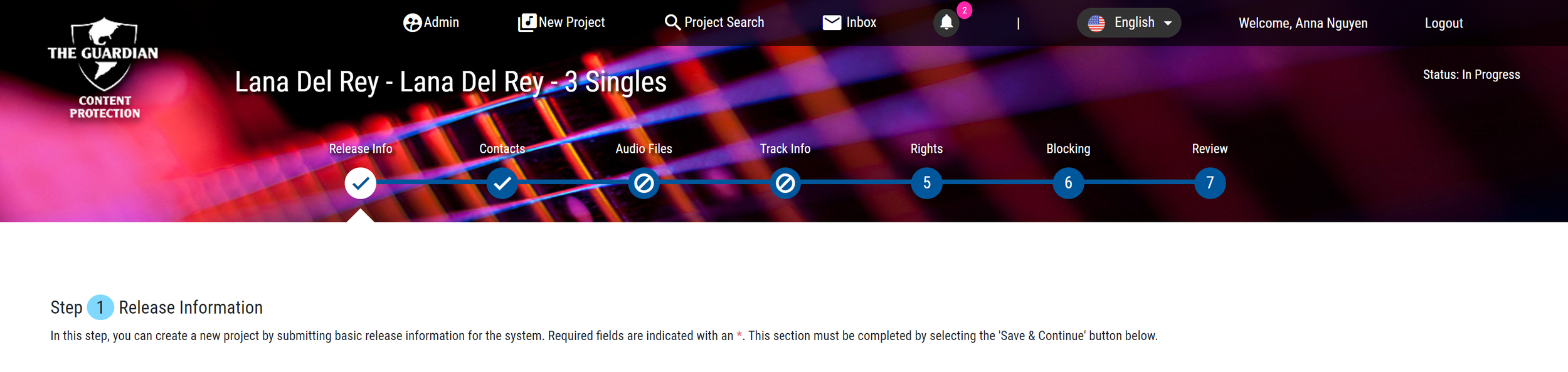 Our team developed a seven step form sequence for users to follow. I wrote instructions for each step, keeping our division heads’ voices in mind for tone while also keeping in mind that the final reader would be someone at a label in A&R, marketing, publicity, etc.